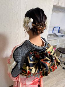 ヘアスタイルはもともとインナーカラーが入っていたので、編み込みが良く映えてお飾りとの相性もバッチリでした~ヾ(≧▽≦)ノ